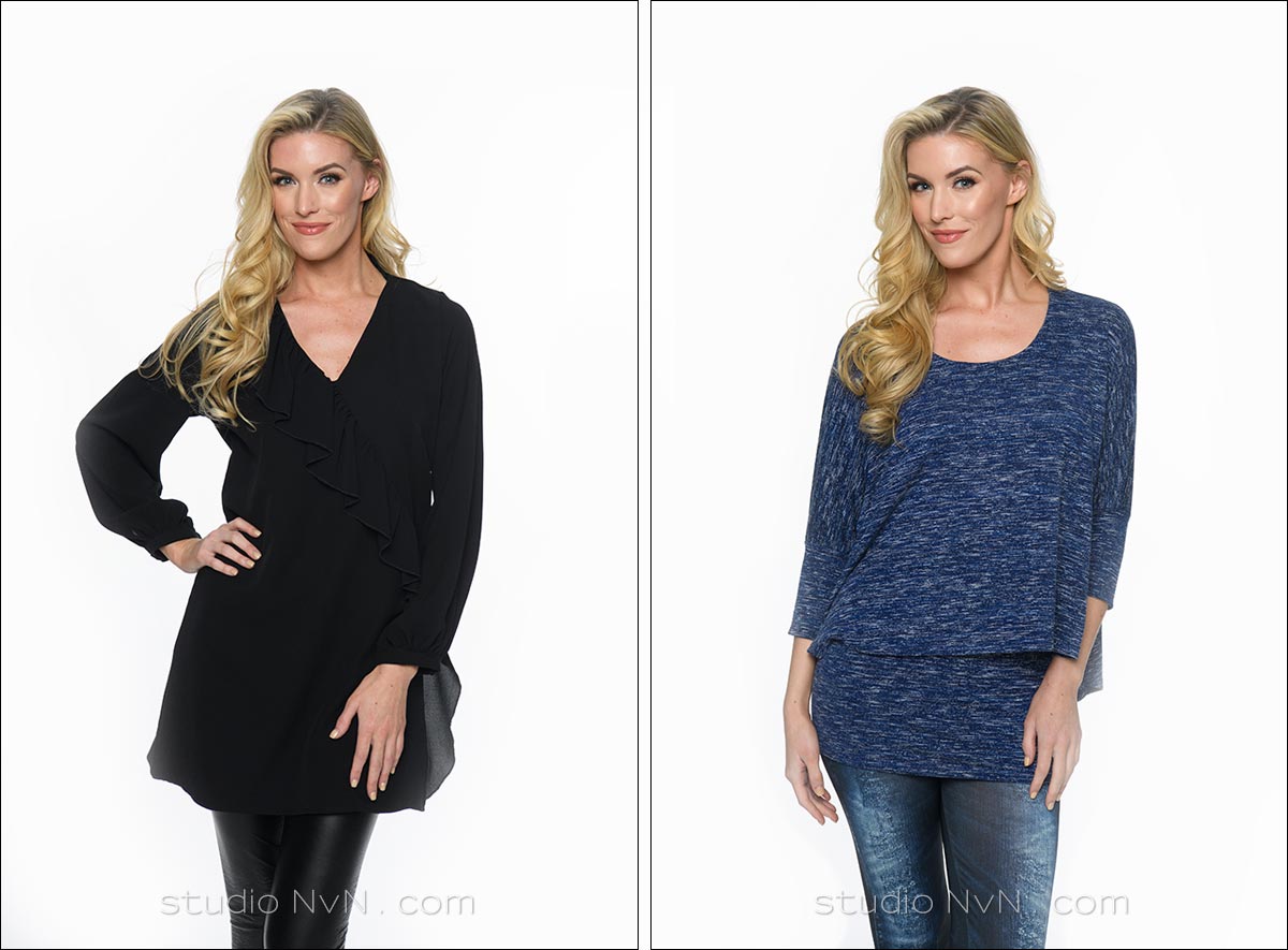 Fashion photographer NJ – fashion photography is of course a wide field, encompassing divergent styles, even in terms of where it is shot, whether studio or outside on location. Here I want to specifically show some of my work shooting catalog fashion in my studio – specifically, white backdrop fashion catalog work. It is a distinct look. Even though the style is straight-forward, there needs to be consistency in the lighting and positioning of the models, as well as camera angles. I will happily coordinate with you, to ensure you get the results you need.