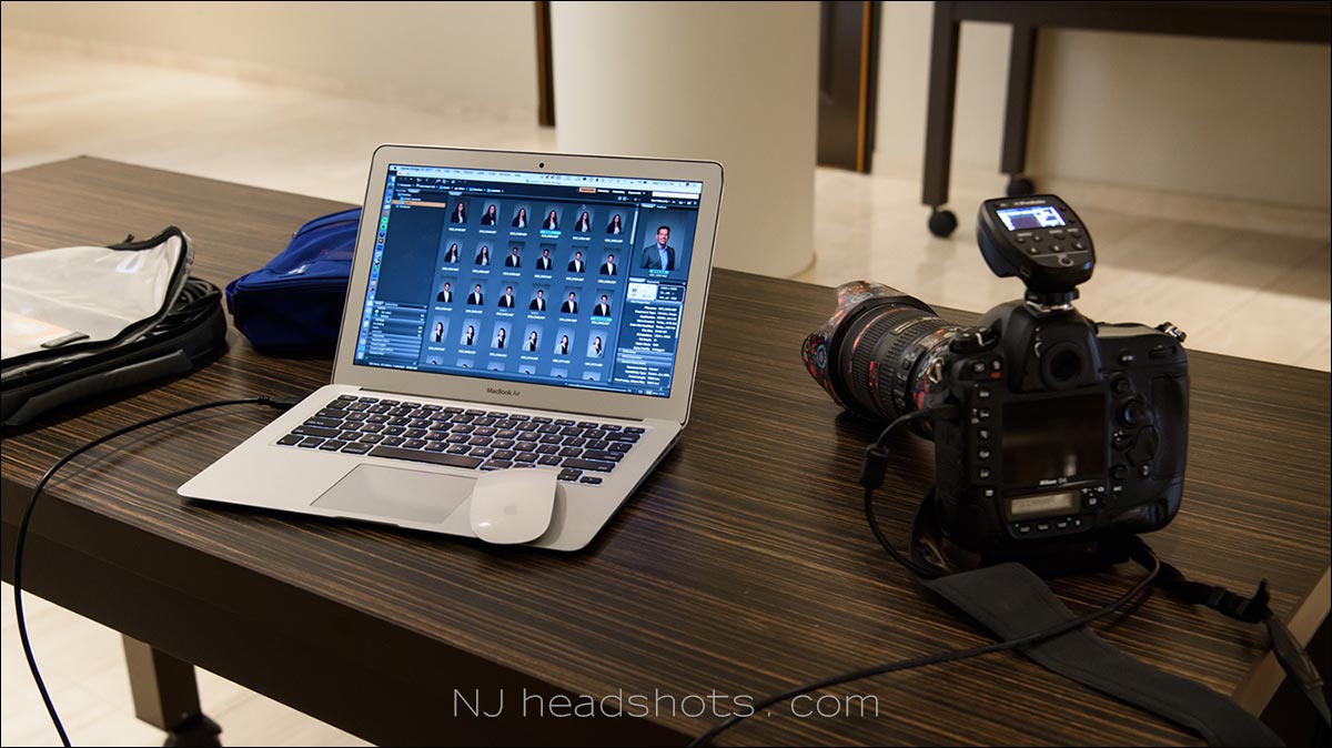 As the photo above shows, where it is feasible the photographs are taken tethered to a laptop so that everyone can see what the images look like. I want your colleagues and employees to be able to select a favorite image on the spot. We could always do the image selection later on via an on-line gallery, and that is also a good option when there is a time crunch. But I find that there is more energy and involvement when people can see their headshots as we take them. This allows us to do some adjustments to clothing and perhaps even hair. We can finesse the pose and positioning. Right then and there.